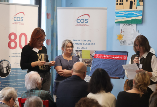 Comme les 2 autres établissements de Charente, l’Ehpad COS Sainte-Marthe à Cognac a inauguré sa salle Alexandre Glasberg en profitant de la Journée Internationale du Bénévolat. À partir de 14h30, résidents, familles, professionnels et bénévoles étaient au rendez-vous pour passer un après-midi festif. Après les discours officiels et le dévoilement symbolique de la plaque « Salle Alexandre Glasberg », de nombreuses prises de paroles ont eu lieu : résidentes, professionnelles et bénévoles ont, tour à tour, témoigné en partageant le plaisir de faire partie d’un établissement aussi familial et chaleureux.