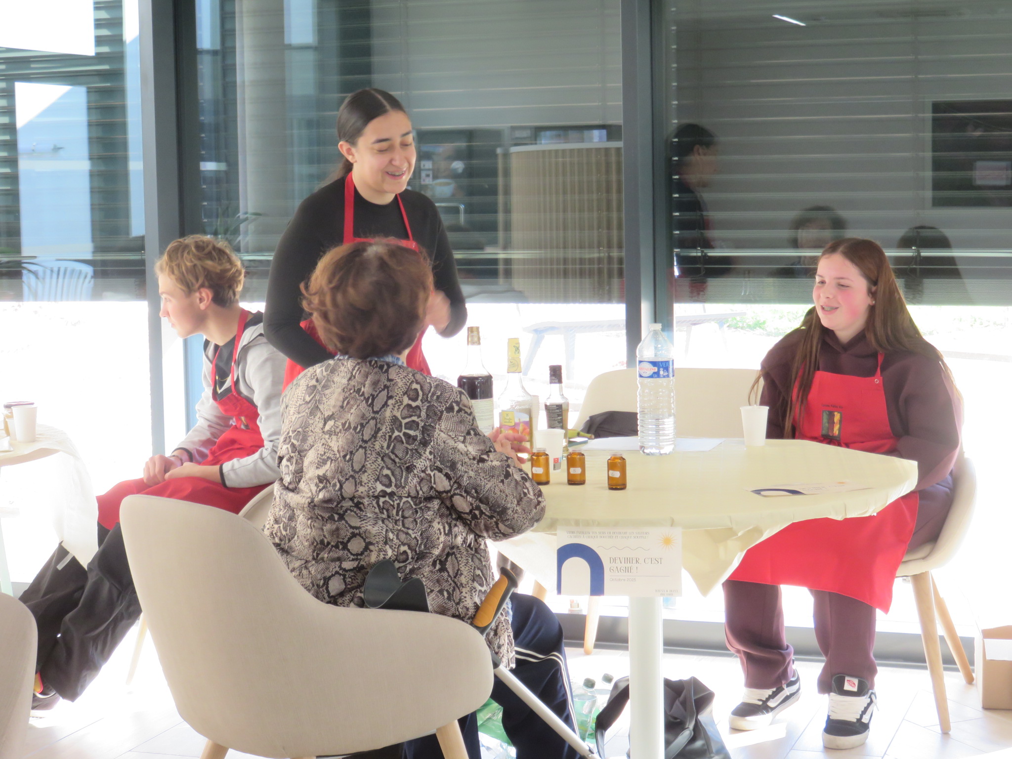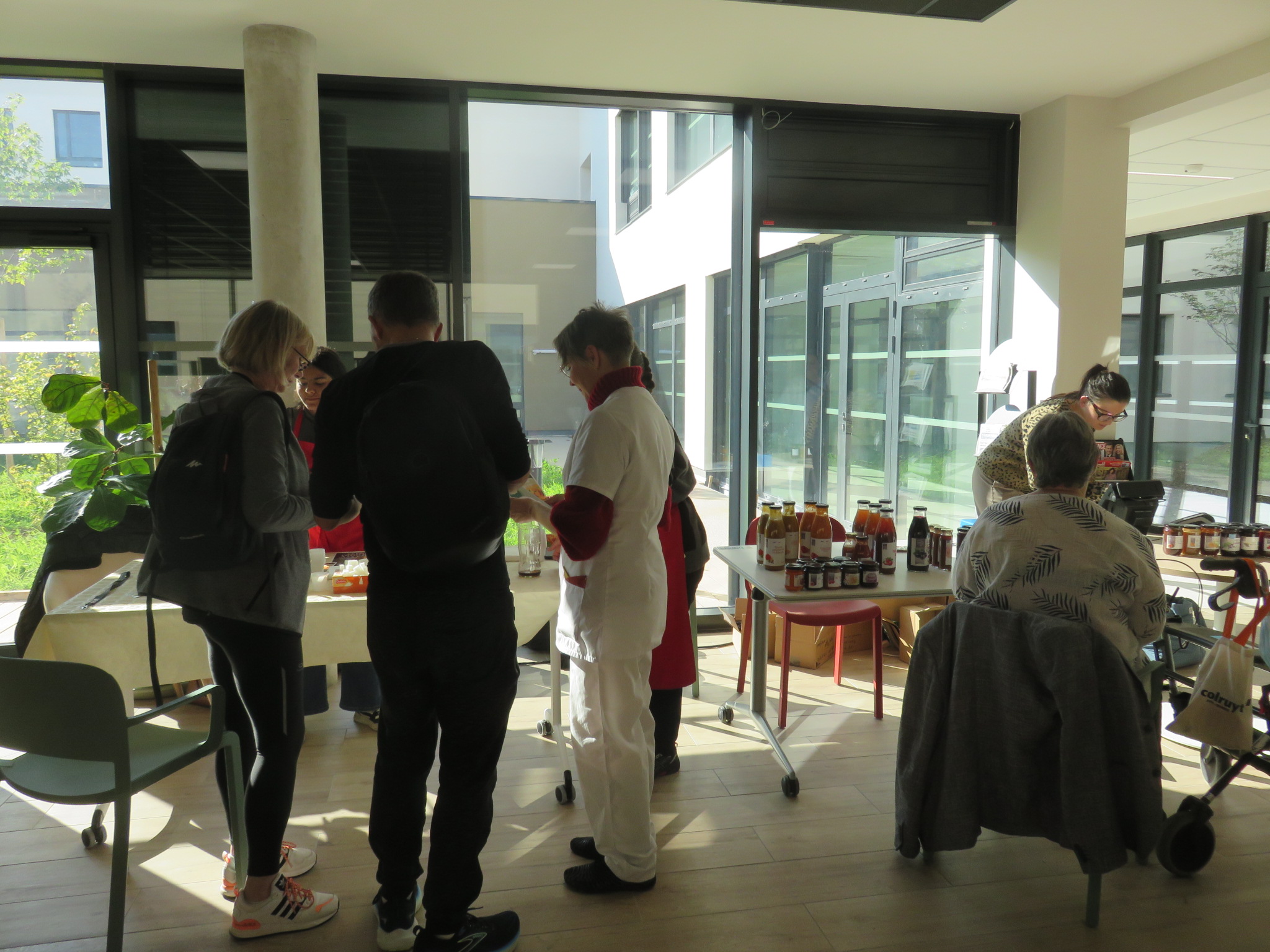 La thématique retenue cette année étant les jus de fruits, chaque matin, les patients ont eu le plaisir de déguster à l’aveugle un jus différent, servi avec le petit déjeuner dont il devait deviner sa composition (un ou plusieurs fruits). Le personnel a également pu participer à cette animation conviviale sur la pause du déjeuner.
