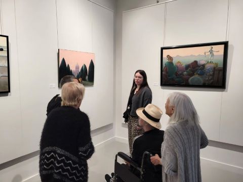 Nos cinq résidantes ont ainsi pu admirer les œuvres de Bob LESCAUX, exposées aux visiteurs, avant de profiter d’un café et d’une collation devant la bibliothèque.