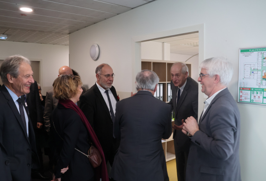 Ce vendredi 16 janvier, l’ensemble des équipes du CADA a eu le plaisir de se retrouver et d’accueillir de nombreuses personnalités. Parmi elles figuraient le Président de la Fondation Michel CADOT, Etienne GUYOT, Préfet de la région Nouvelle-Aquitaine, Préfet de la Gironde, Stéphane CORBIN, Directeur Général des Services du Département de la Gironde, Élise ADEVA-POEUF, Directrice de l'asile à la direction générale des étrangers en France du Ministère de l’Intérieur, Pascal BRICE, Président de la Fédération des Acteurs de la Solidarité, Michel POIGNONEC, Maire de Villenave-d’Ornon, ou encore Alexis SALMON-LEGAGNEUR, Directeur Général D’ALGECO® France.