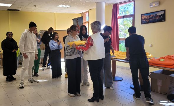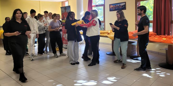 Le dernier jour, Madame HOLVOET, Directrice de l’établissement, a pu remettre aux nouvelles recrues un sweat aux couleurs de l’Association, symbolisant leur entrée au Service Civique.